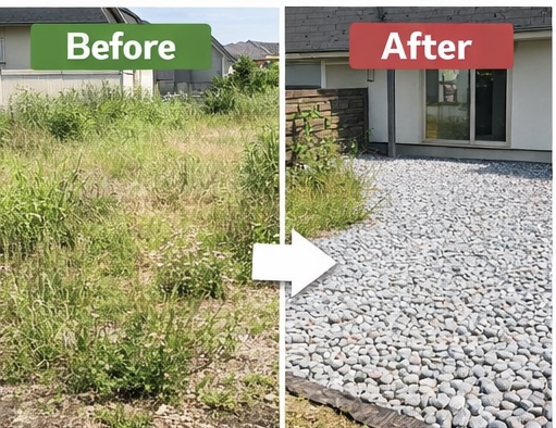 防草シート+砂利で手軽な雑草対策!!!